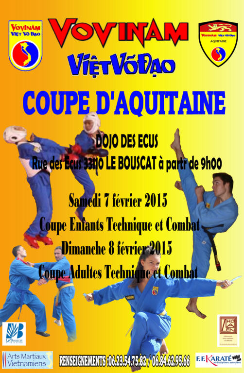 La Coupe d'Aquitaine de Vovinam Viet Vo Dao aura lieu les samedi 7 et dimanche 8 février 2015,