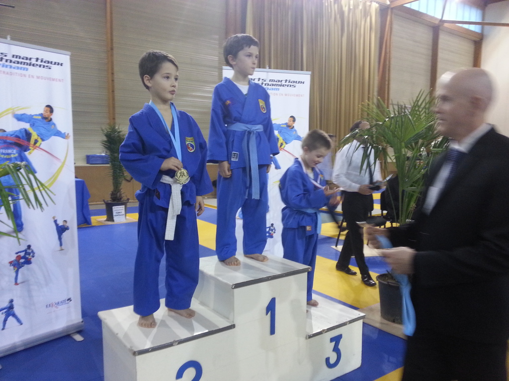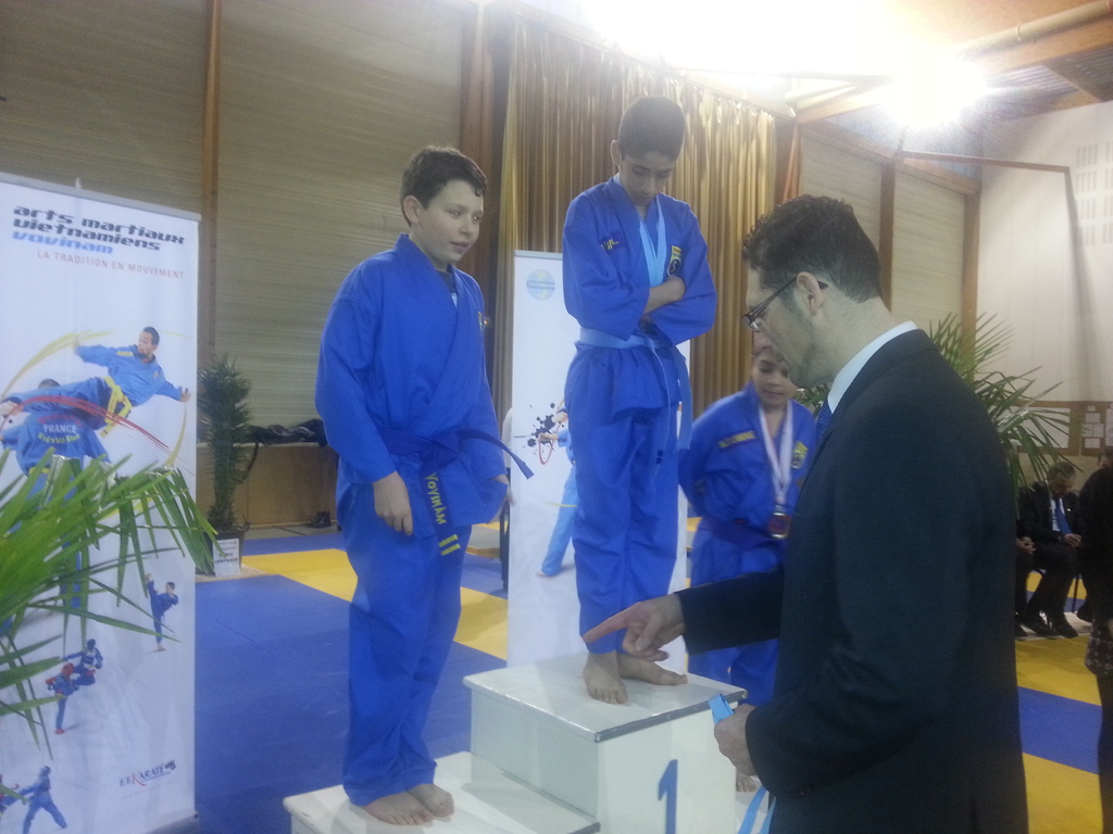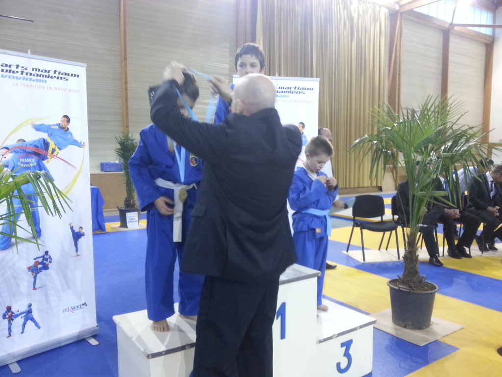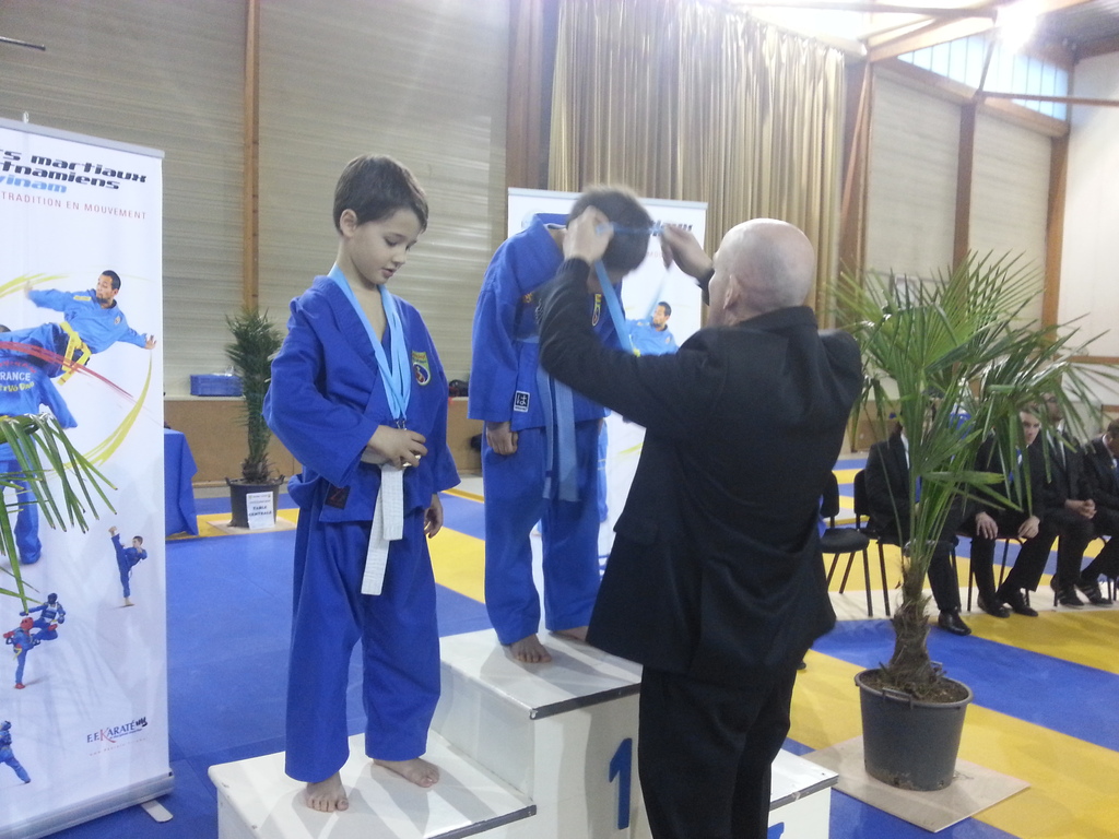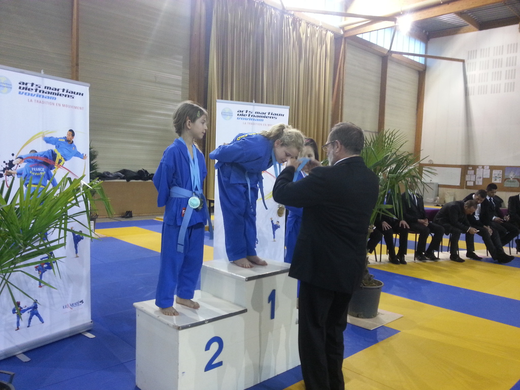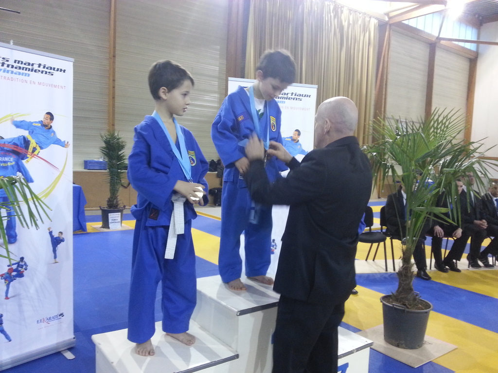 80 enfants se sont affrontés en toute sportivité dans les catégories Mini-Poussins, Poussins, Pupilles, Benjamins et Minimes, aussi bien dans les épreuves techniques qu’en combat. Pour chaque épreuve, les trois premiers ont été récompensés par une médaille remise par les nombreux maîtres et professeurs présents à cette manifestation. Le lendemain matin, ce fut le tour des Cadets, Juniors et Seniors (56 compétitrices ou compétiteurs) de se mesurer dans les nombreuses épreuves proposées. Là encore, de belles prestations ont été distinguées, aussi bien pour les Quy?n, Song Luy?n que pour les combats. Remerciements à la Municipalité du Bouscat, représentée par M. VINCENT adjoint délégué aux Sports, ainsi qu’à Stéphane CUCHI, président de l’association Vovinam-Aquitaine et son équipe, Olivier ARNAUD, trésorier, Me Patrick EYMA, responsable technique, Me Georges MECHAIN et son équipe charentaise, aux juges-arbitres, commissaires, coaches, ainsi qu’aux nombreux bénévoles qui ont oeuvré pour faire de cette manifestation une parfaite réussite.