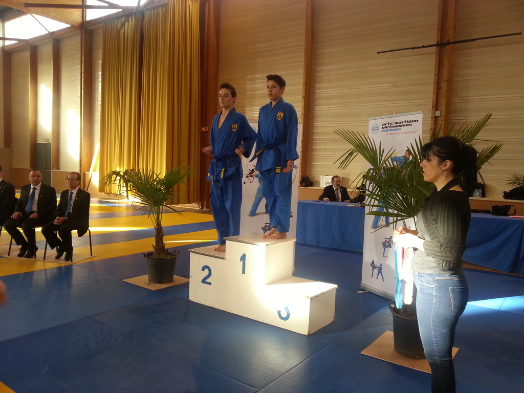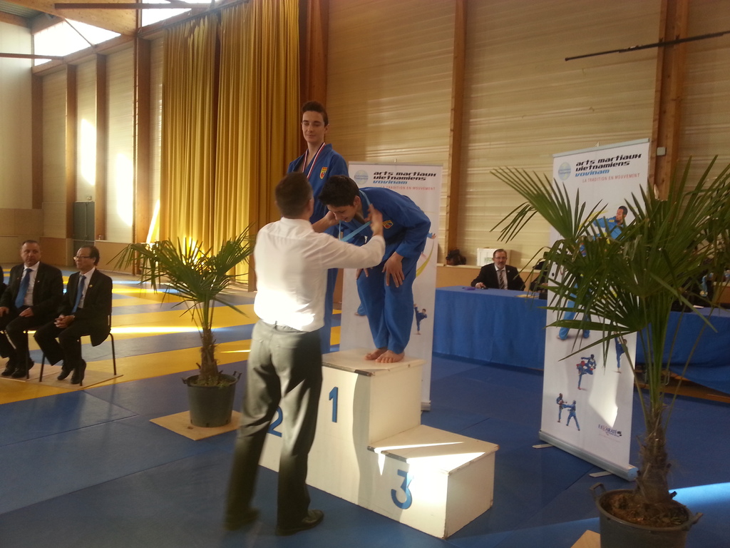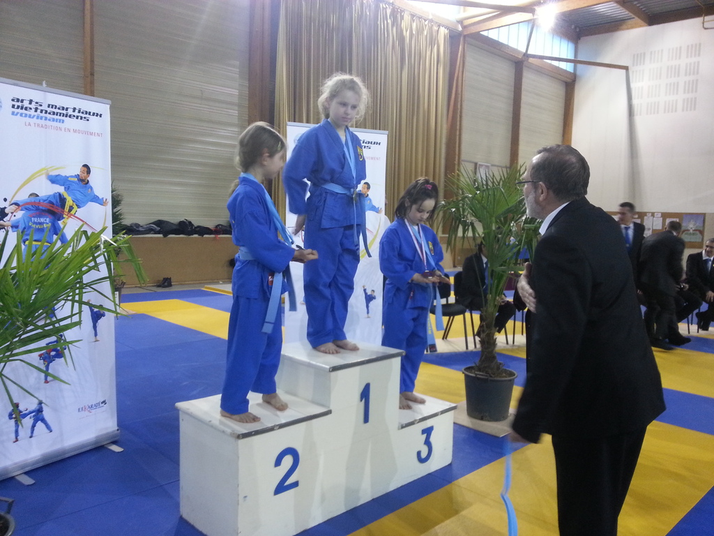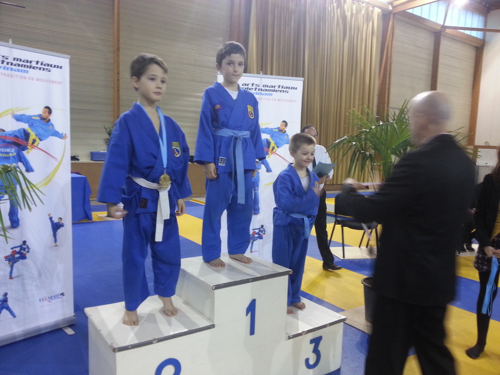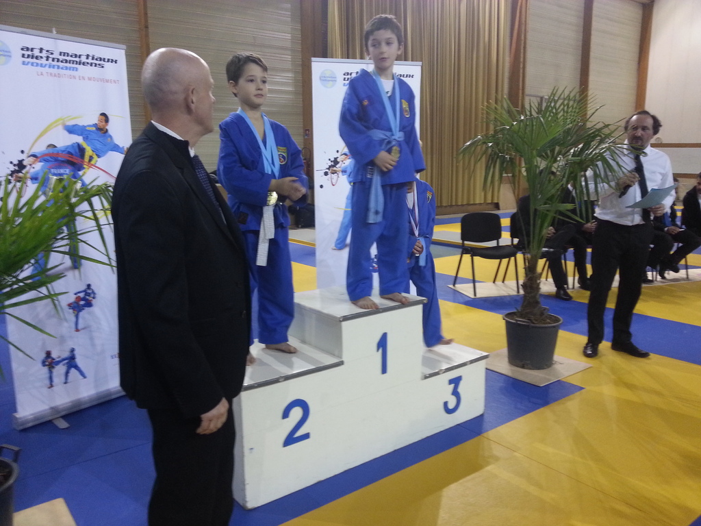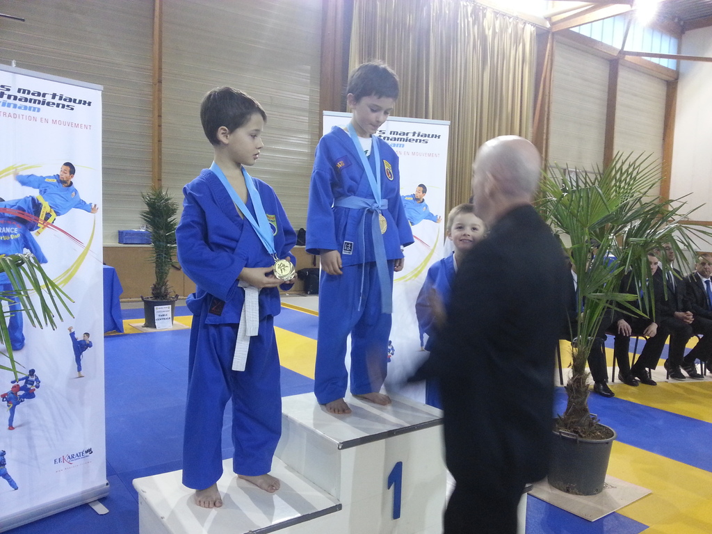 80 enfants se sont affrontés en toute sportivité dans les catégories Mini-Poussins, Poussins, Pupilles, Benjamins et Minimes, aussi bien dans les épreuves techniques qu’en combat. Pour chaque épreuve, les trois premiers ont été récompensés par une médaille remise par les nombreux maîtres et professeurs présents à cette manifestation. Le lendemain matin, ce fut le tour des Cadets, Juniors et Seniors (56 compétitrices ou compétiteurs) de se mesurer dans les nombreuses épreuves proposées. Là encore, de belles prestations ont été distinguées, aussi bien pour les Quy?n, Song Luy?n que pour les combats. Remerciements à la Municipalité du Bouscat, représentée par M. VINCENT adjoint délégué aux Sports, ainsi qu’à Stéphane CUCHI, président de l’association Vovinam-Aquitaine et son équipe, Olivier ARNAUD, trésorier, Me Patrick EYMA, responsable technique, Me Georges MECHAIN et son équipe charentaise, aux juges-arbitres, commissaires, coaches, ainsi qu’aux nombreux bénévoles qui ont oeuvré pour faire de cette manifestation une parfaite réussite.