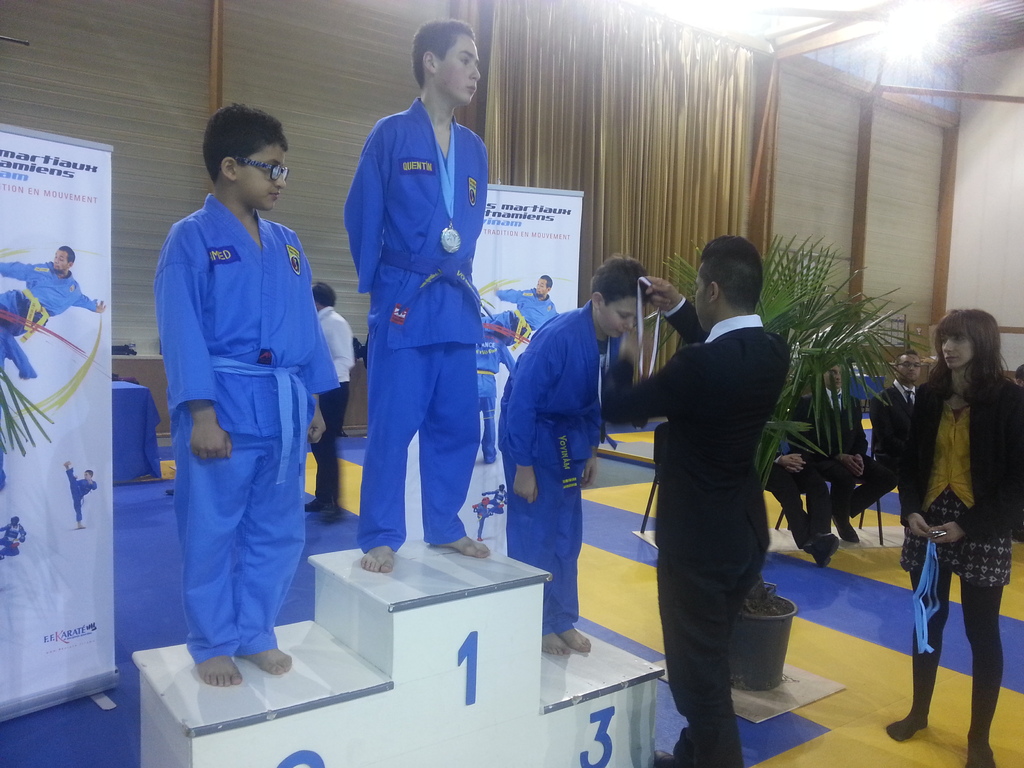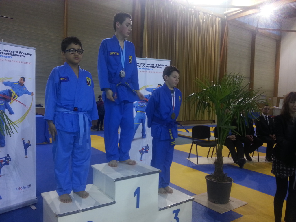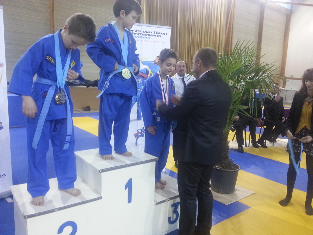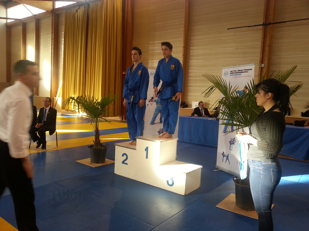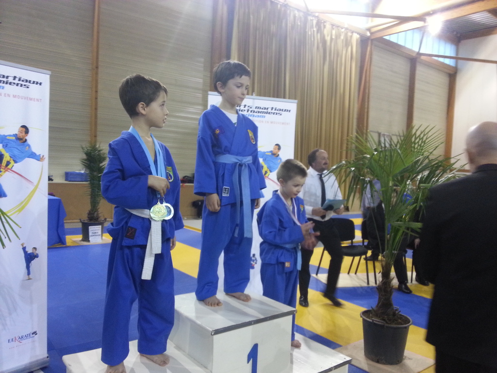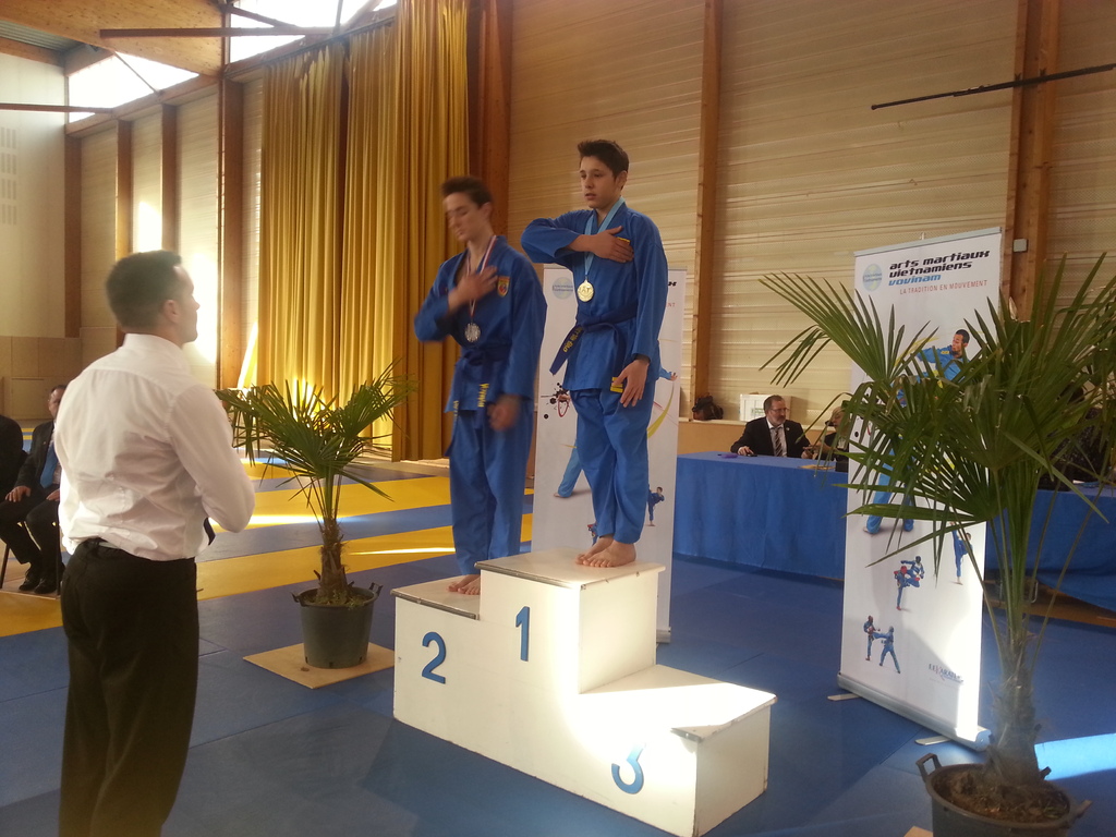 80 enfants se sont affrontés en toute sportivité dans les catégories Mini-Poussins, Poussins, Pupilles, Benjamins et Minimes, aussi bien dans les épreuves techniques qu’en combat. Pour chaque épreuve, les trois premiers ont été récompensés par une médaille remise par les nombreux maîtres et professeurs présents à cette manifestation. Le lendemain matin, ce fut le tour des Cadets, Juniors et Seniors (56 compétitrices ou compétiteurs) de se mesurer dans les nombreuses épreuves proposées. Là encore, de belles prestations ont été distinguées, aussi bien pour les Quy?n, Song Luy?n que pour les combats. Remerciements à la Municipalité du Bouscat, représentée par M. VINCENT adjoint délégué aux Sports, ainsi qu’à Stéphane CUCHI, président de l’association Vovinam-Aquitaine et son équipe, Olivier ARNAUD, trésorier, Me Patrick EYMA, responsable technique, Me Georges MECHAIN et son équipe charentaise, aux juges-arbitres, commissaires, coaches, ainsi qu’aux nombreux bénévoles qui ont oeuvré pour faire de cette manifestation une parfaite réussite.